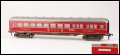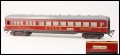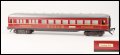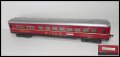 1411-1a (1952) | Wagen komplett rotglänzend handlackiert, Zuglaufschild "Hamburg-München" erhaben mit aufgedrucktem Text . Wagenboden braun ohne Stempelung und Drehgestellblenden komplett braun mit zapfengelagerten braunen Kunststoffrädern. Am Wagenboden erhaben "Fleischmann Made in US Zone Germany". Küchenzeile in Fahrtrichtung rechts. Originalkarton stehend. Dunkelgrau durchgefärbtes Dach ist nur dünn silber gespritzt, d.h. an den Rändern ist das dunkle Trägermaterial sichtbar. Wagen glänzendrot lackiert, Zierlinie gelb und Schürze schwarz (handbemalt) | 125,-- |