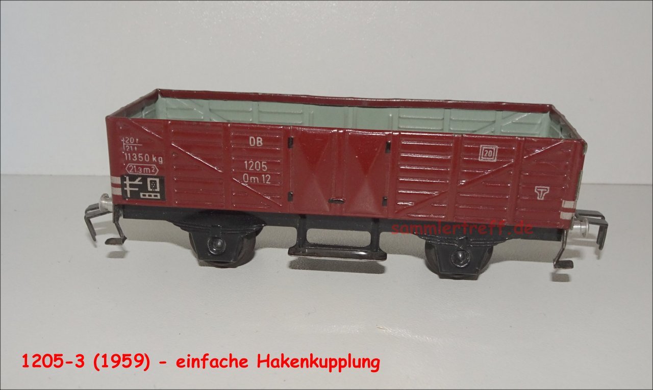 A 1205-3 (1959-61/62) | wie A 1205-2, aber Aufdruck "DB", "1205", "Om 12". Ab ca. 1960 Hakenkupplung ohne dem oberen "Horn" | STD |