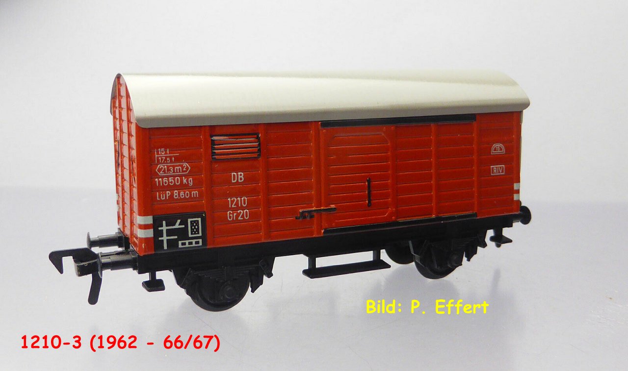 1210-3 (1962-1966/67) | wie 1210-2, aber Wagenkasten hellbraun, Wagenboden Kunststoff, keine seitlichen 2 Lüfterlöcher! | STD |